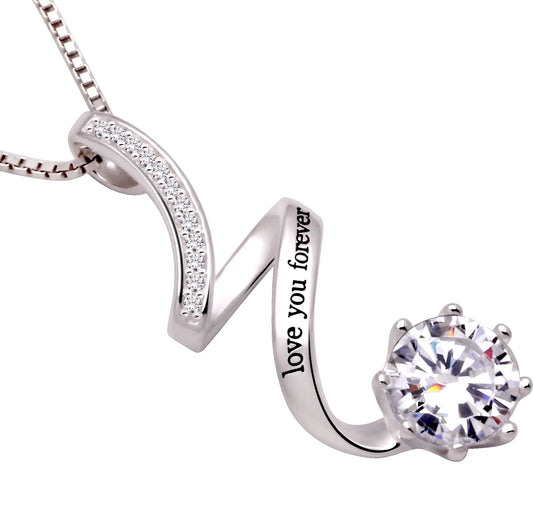 Jewelry Sterling Silver "I Love You for Always and Forever" Love Heart Cubic Zirconia Necklace